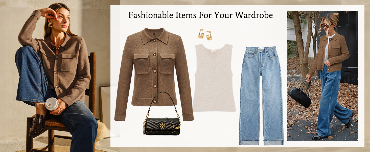 Women's Fashion Cropped shackets Stylish Button Down Sweater Jacket