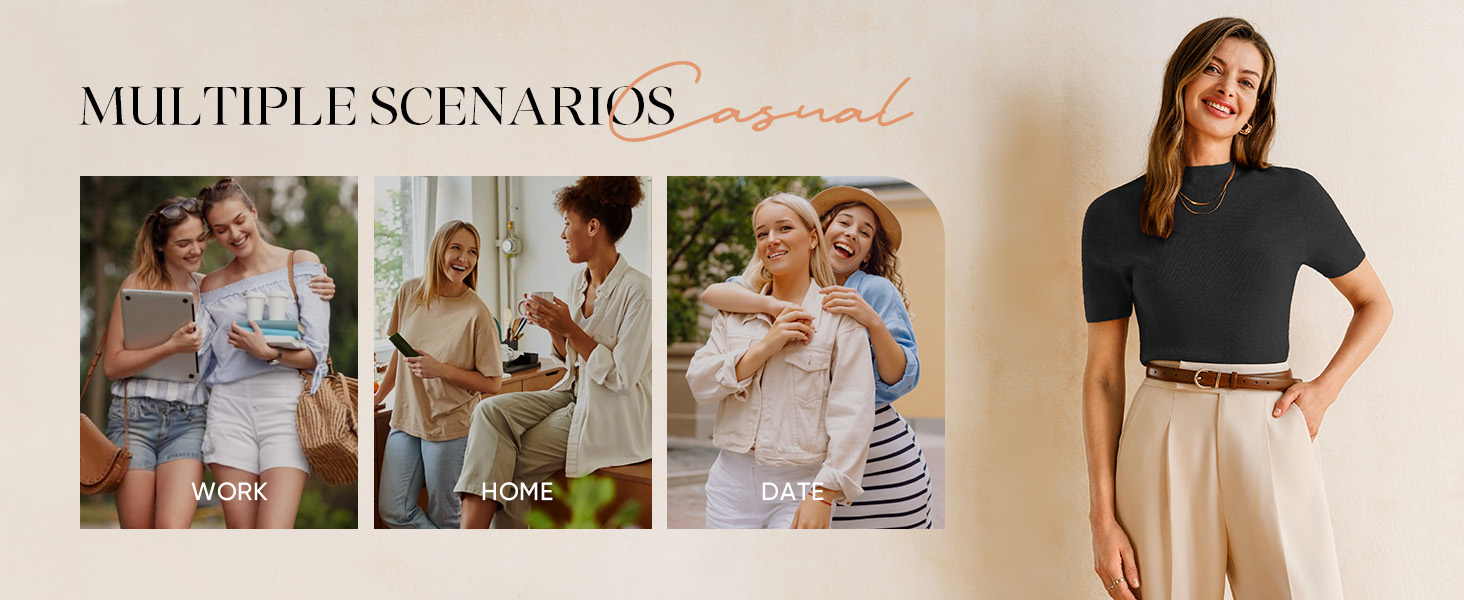 • Arach&Cloz Women's Wool Blend Summer Fall Seamless Rip Resistant Tops Opaque Shirts