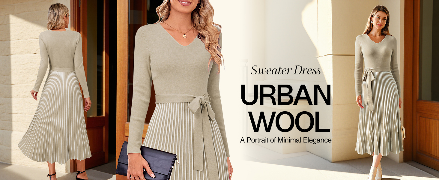Arach&Cloz Women's Wool Blend Elegant Going Out Dress Cocktail Party Midi Dress