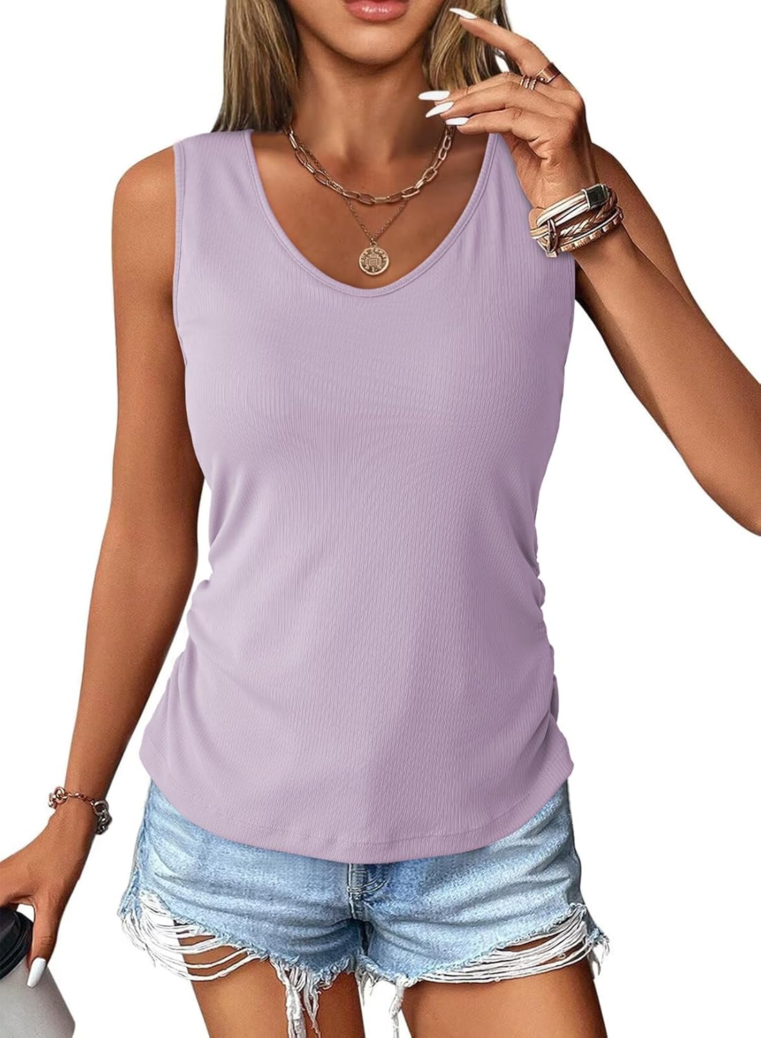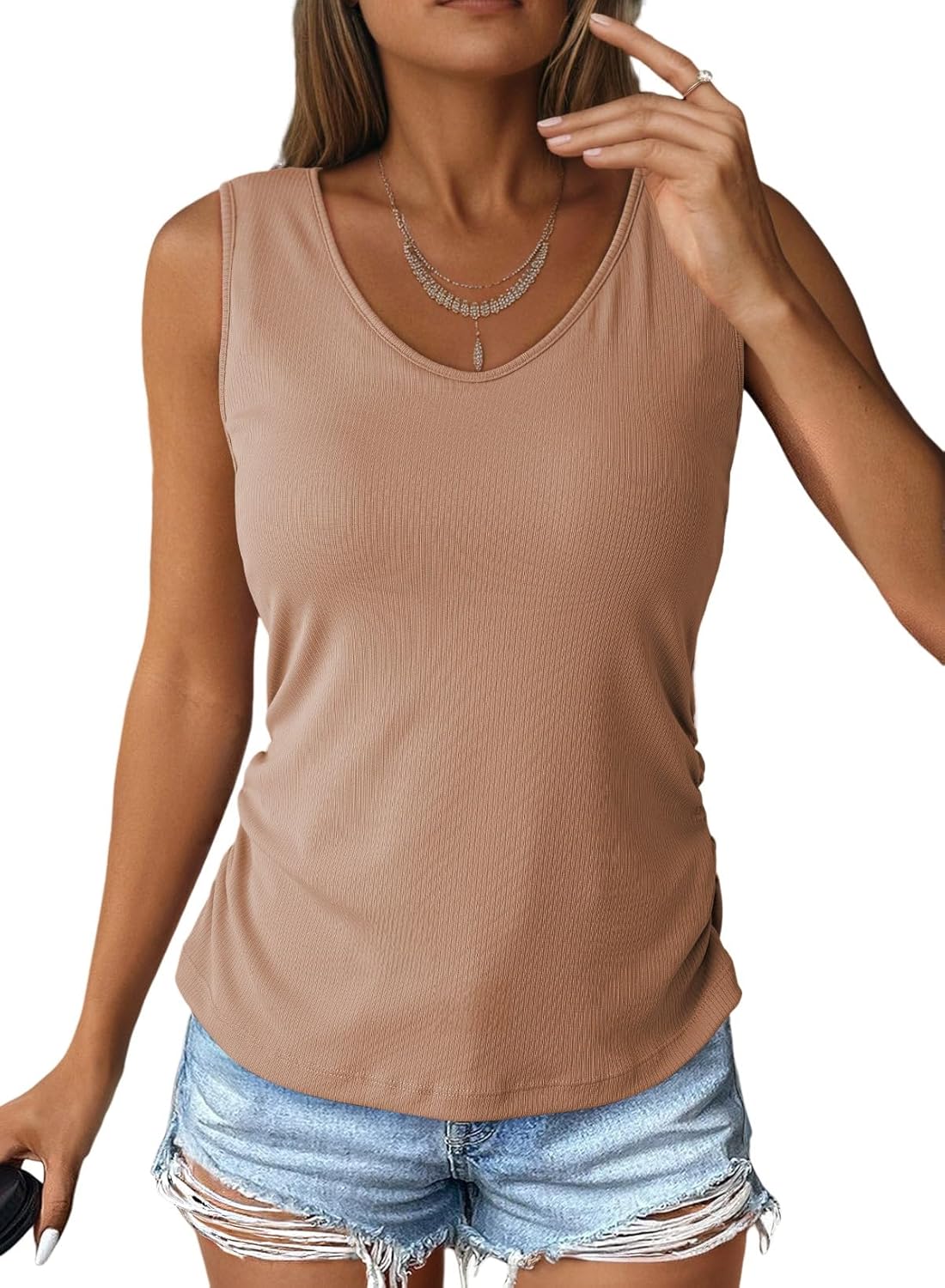 Dokotoo Tank Top with Built in Bra for Women Summer Ruched Sleeveless Shirts
