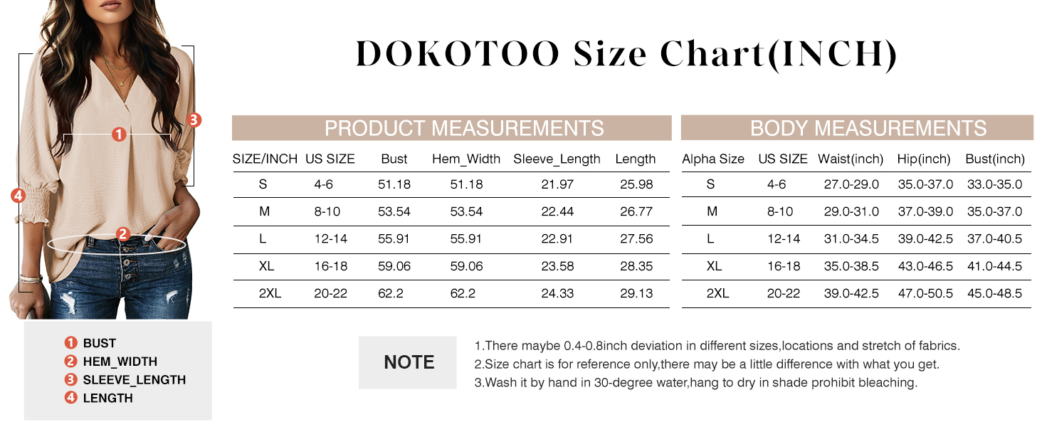 Dokotoo 3/4 Sleeve Length Womens Tops Blouses for Women Dressy Casual