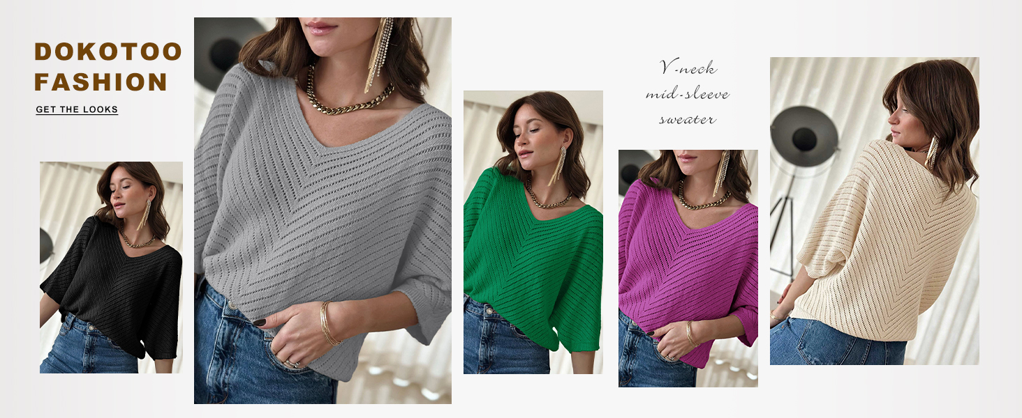Dokotoo Summer Spring Casual 3/4 Short Sleeve Sweaters for Women