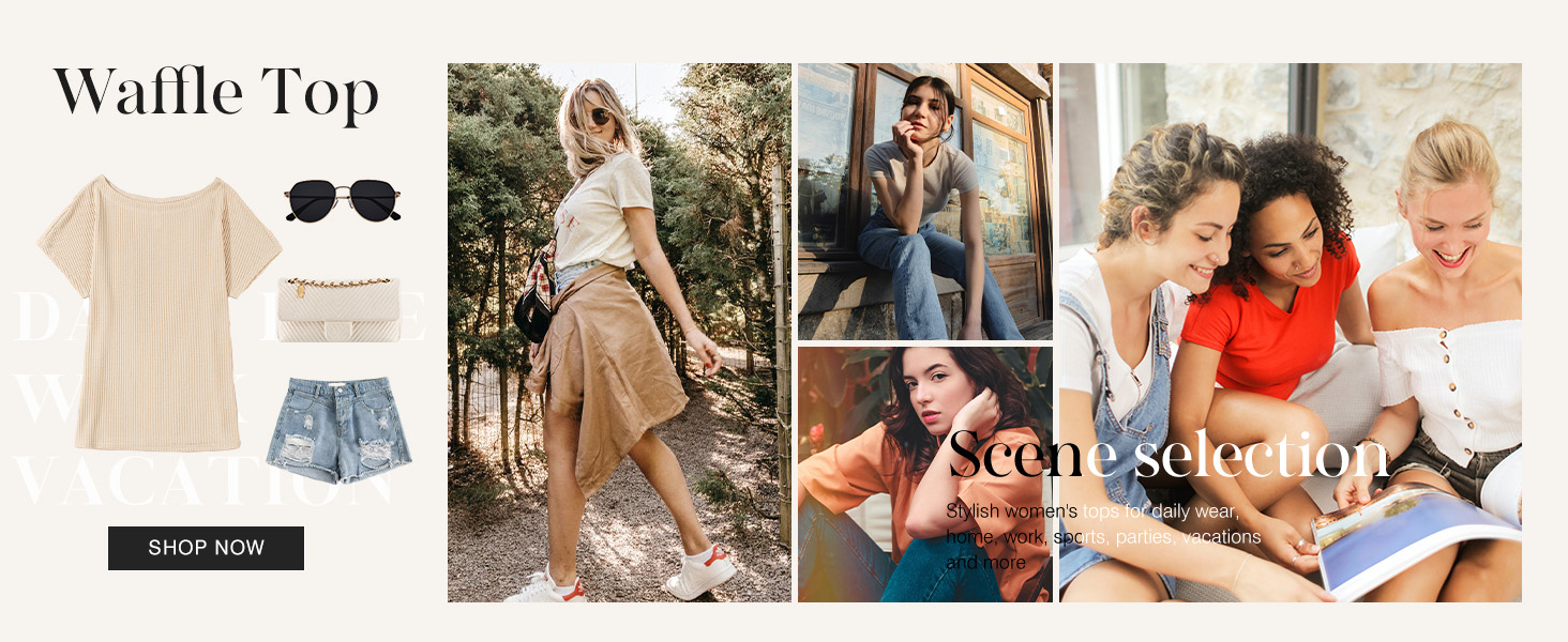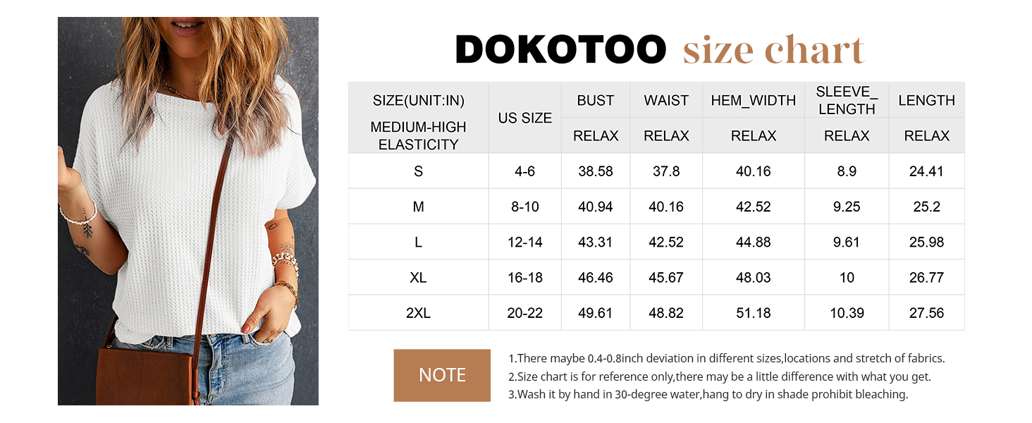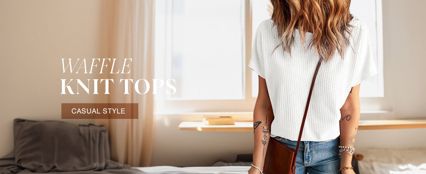 • Dokotoo Women's Casual Boat Neck Short Sleeve Waffle Knit Shirts Loose Summer Tunic Tops Blouses
