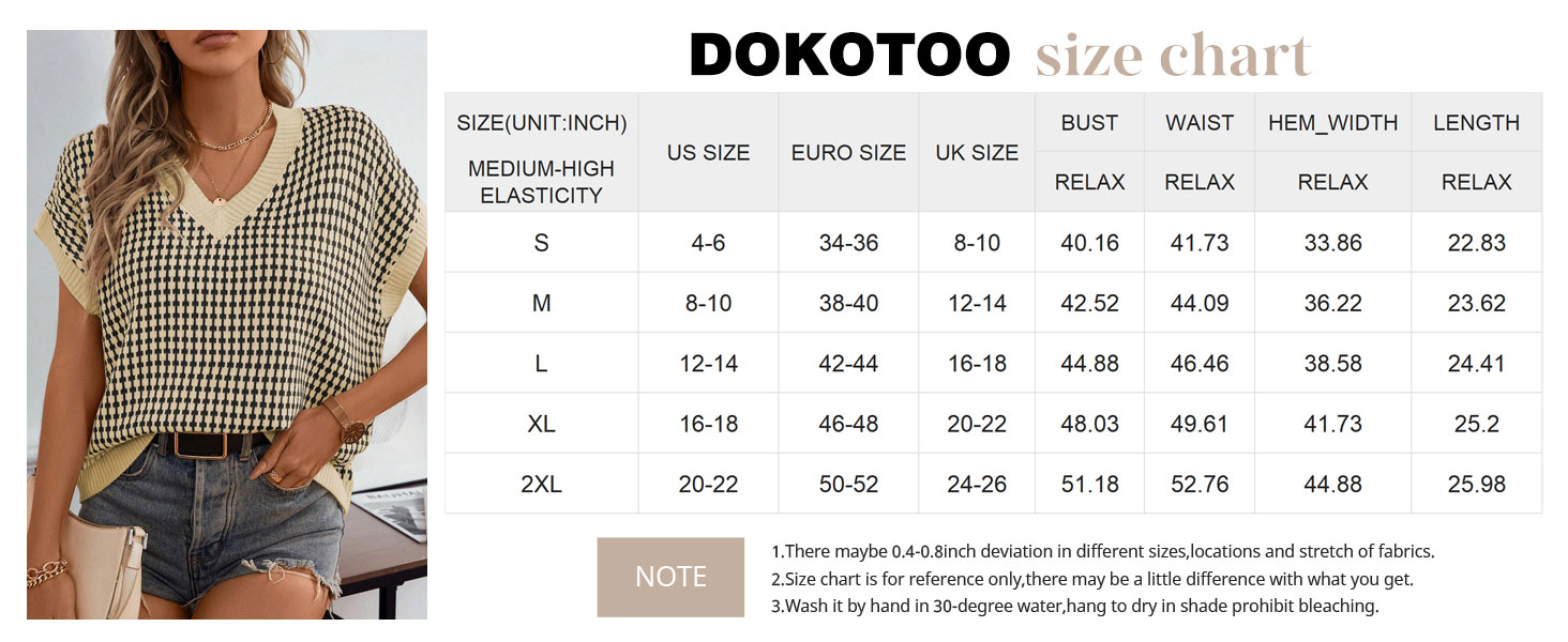 • Dokotoo Womens Casual Summer Tops V Neck Short Sleeve Plaid Knit Vest Loose Fit Pullover Sweaters Blouses