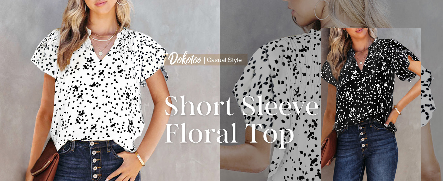 Dokotoo Women's Casual Alicia Floral Smocked Short Sleeve Blouses Bohemian Tops