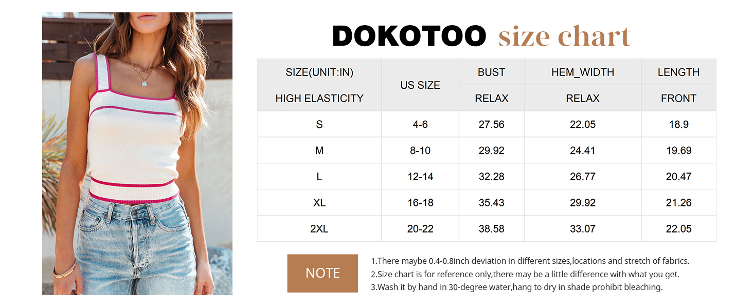 • Dokotoo Women's Square Neck Knit Crop Tank Tops 2025 Slim Fit Y2K Color Block Sleeveless Cami Shirts