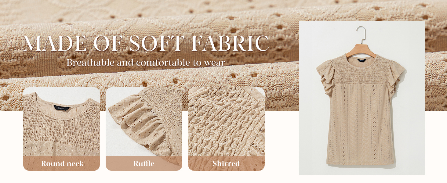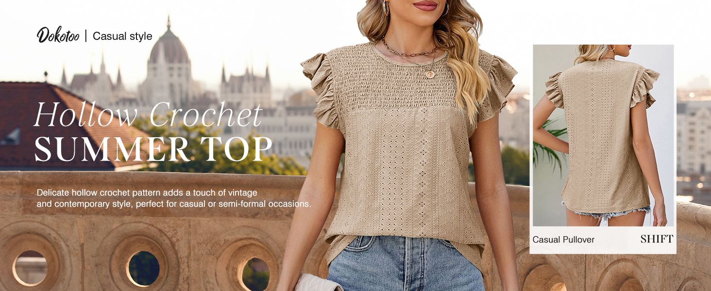 • Dokotoo Womens Summer Knit Tops 2025 Hollow Out Crewneck Cute Ruffle Short Sleeve Womens T Shirts Blouses