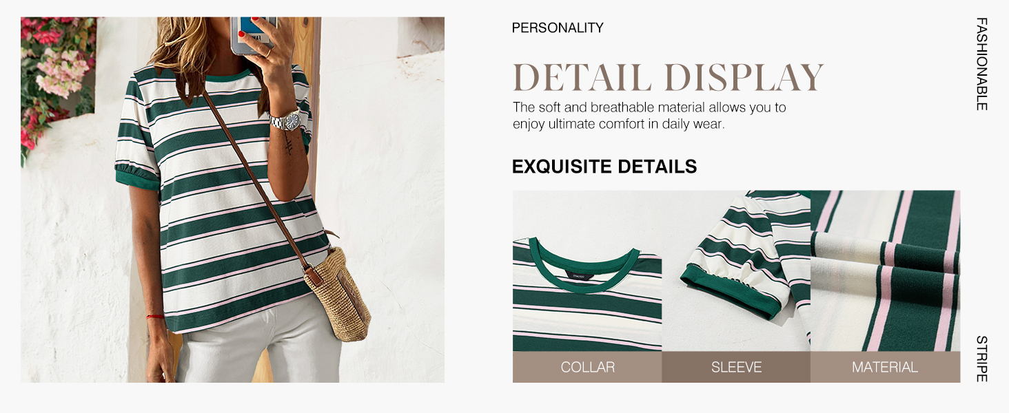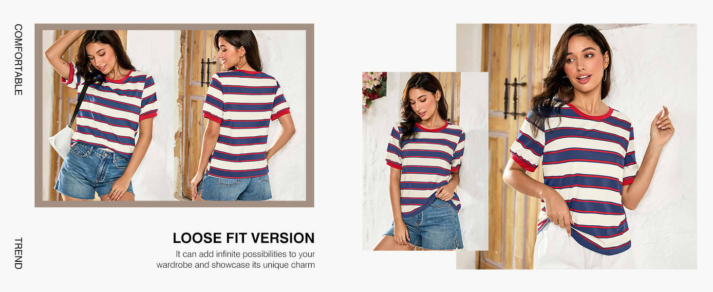 Dokotoo Short Sleeve T Shirts for Women Striped Summer Women Blouses Basic Tees