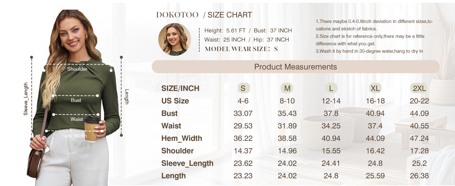 Dokotoo Womens Long Sleeve Slim Fit Soft Tops