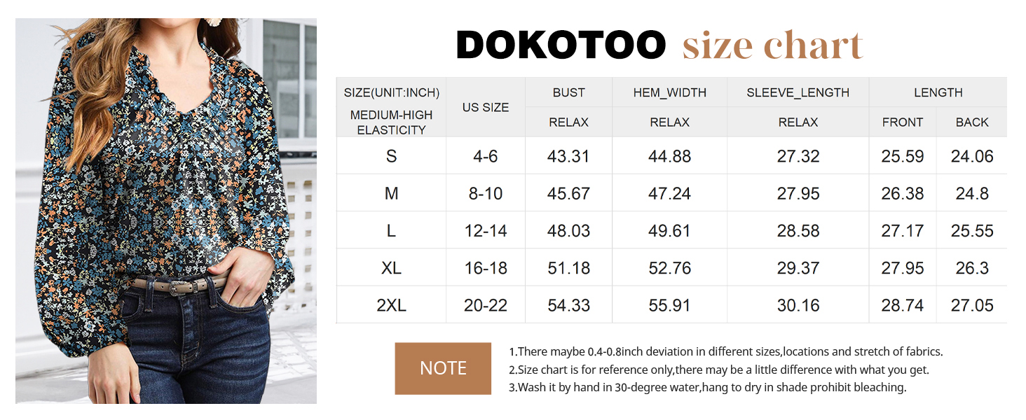 Dokotoo Womens Tops Fall Blouses Casual Floral Print V Neck Flowy Shirt