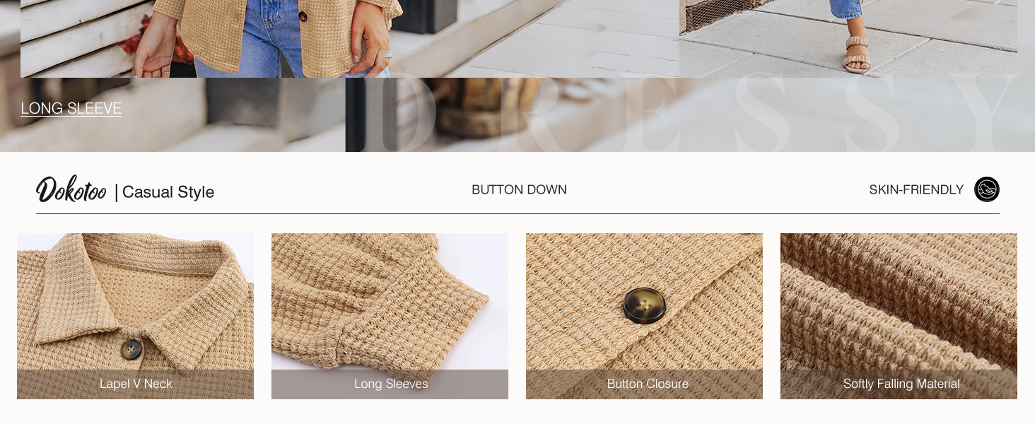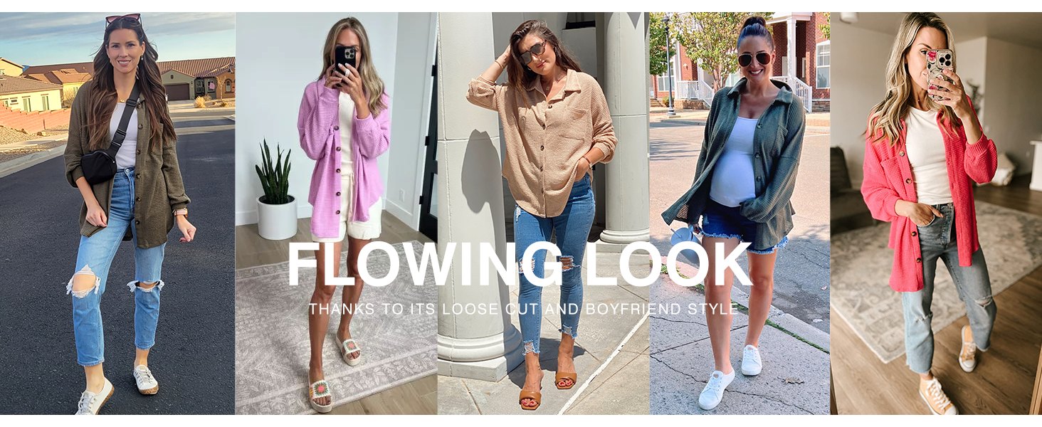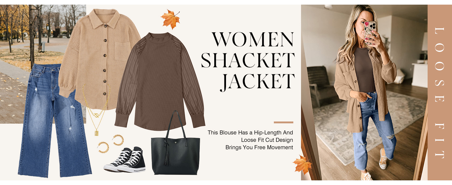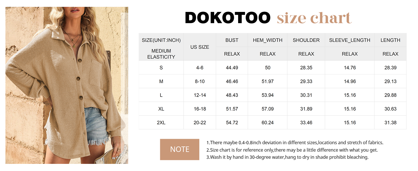• Dokotoo Womens Waffle Knit Shacket Jacket Casual Long Sleeve Button Down Shirts Dressy Blouses Tops