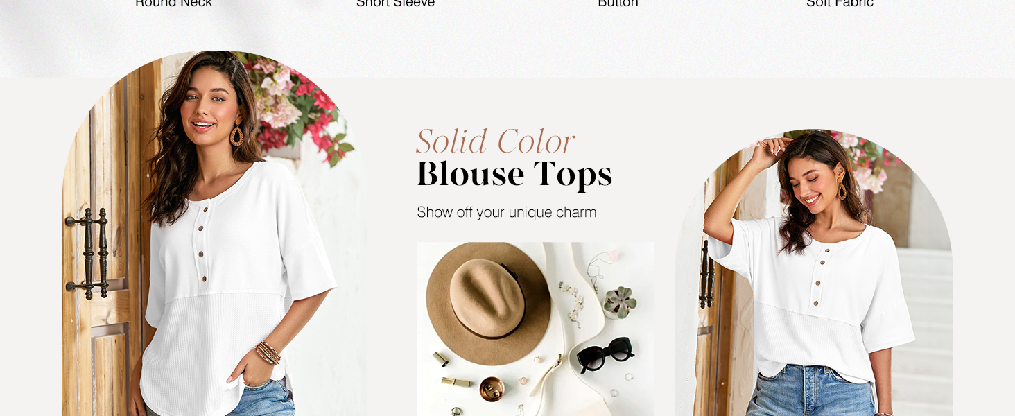 Dokotoo 3/4 Sleeve Casual Crew Neck Button Down Waffle Knit Tops