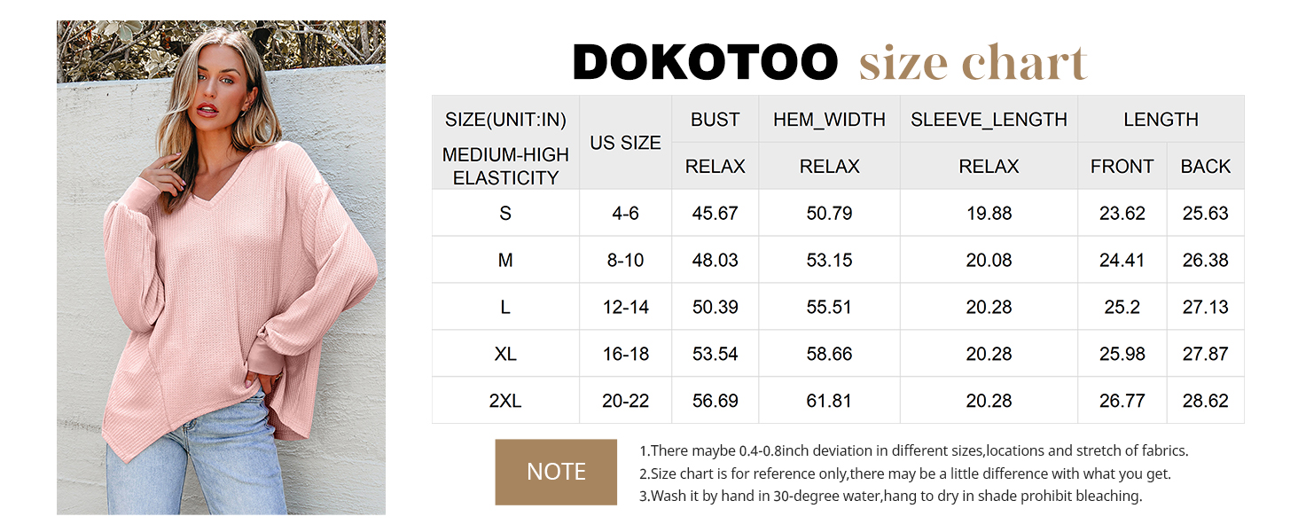 Dokotoo Womens Waffle Knit Tops Fashion 2025 Long Lantern Sleeve Casual Blouses V Neck Oversized T Shirts