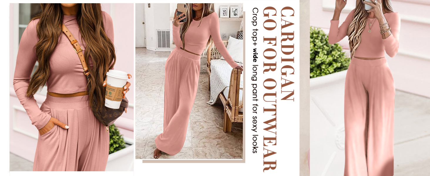 long sleeve crop shirts for women lounge sets 2 piece workout pajama set fall fashion matching pjs business casual outfits