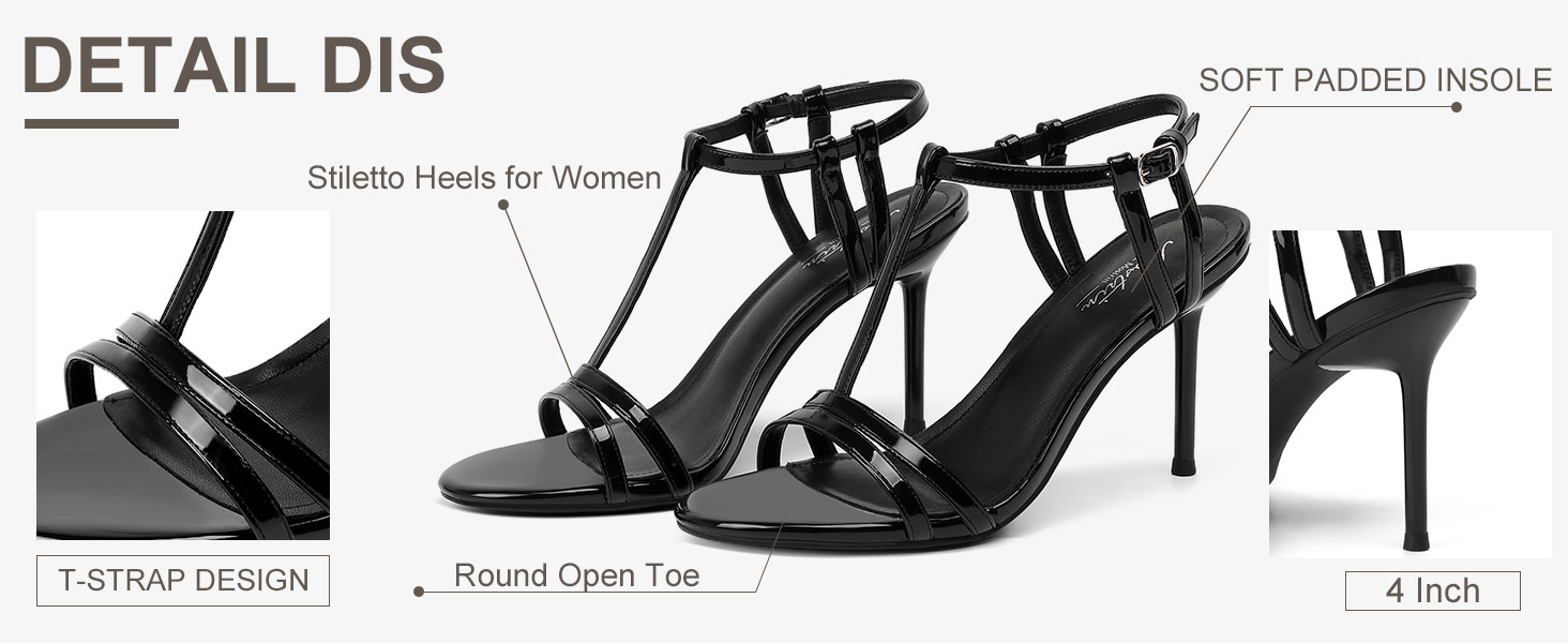 • Mostrin Strappy Heels for Women Round Open Toe Lace Up Heeled Sandals Ankle T Strap Stiletto High Heels Dress Shoes