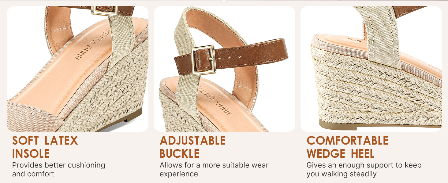 • PIZZ ANNU Women's Espadrille Low Wedge Heel Sandals with Buckle Ankle Strap Close Toe Casual Dressy Summer Platform Shoes
