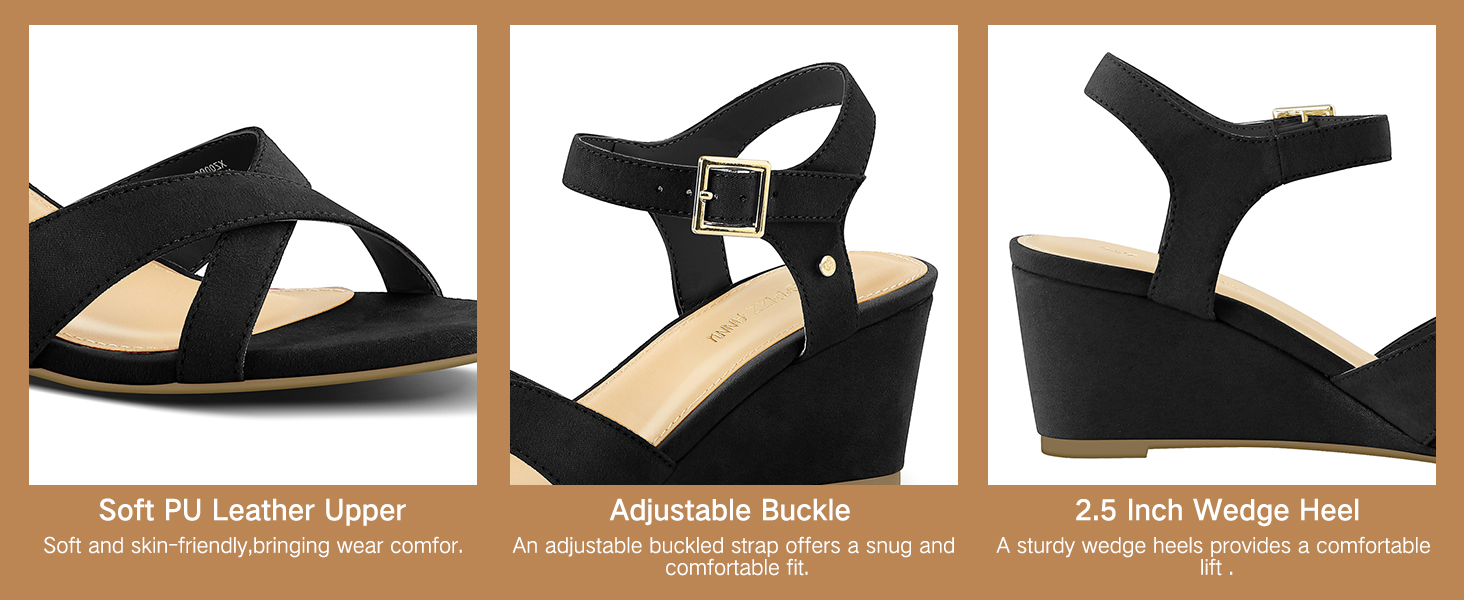 • PIZZ ANNU Women's Wendy Low Wedge Sandals Ankle Strap Espadrille Open Toe Casual Summer Women Wedge Heels Shoes