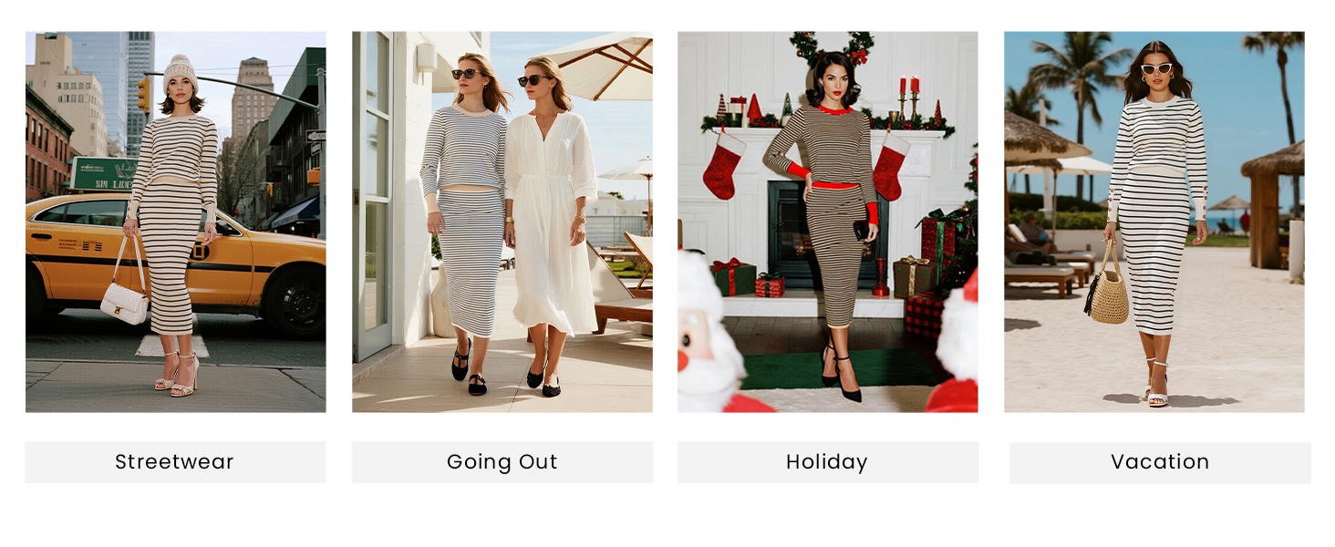 Women Striped Sweater Sets Offers A Unique and Flattering Appeal, Creating A Slimming Effect