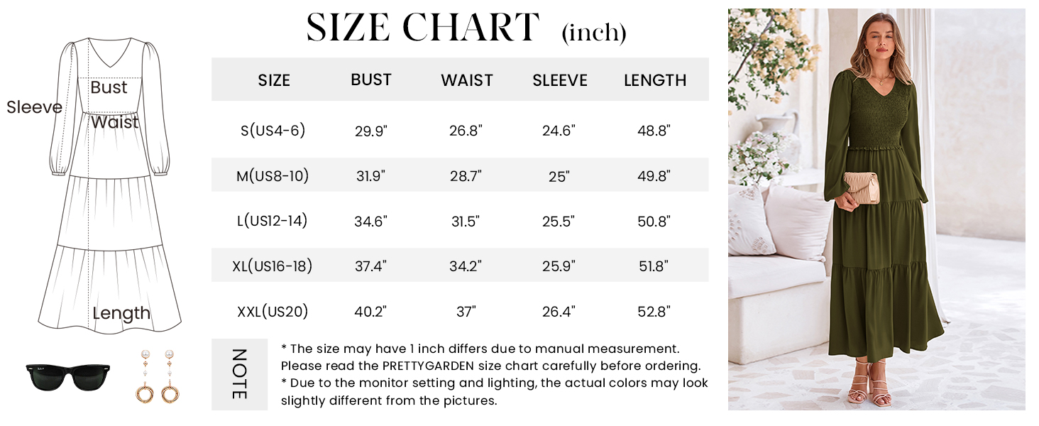 PRETTYGARDEN Womens Long Flowy Dress Casual Long Sleeve Smocked Midi Dresses