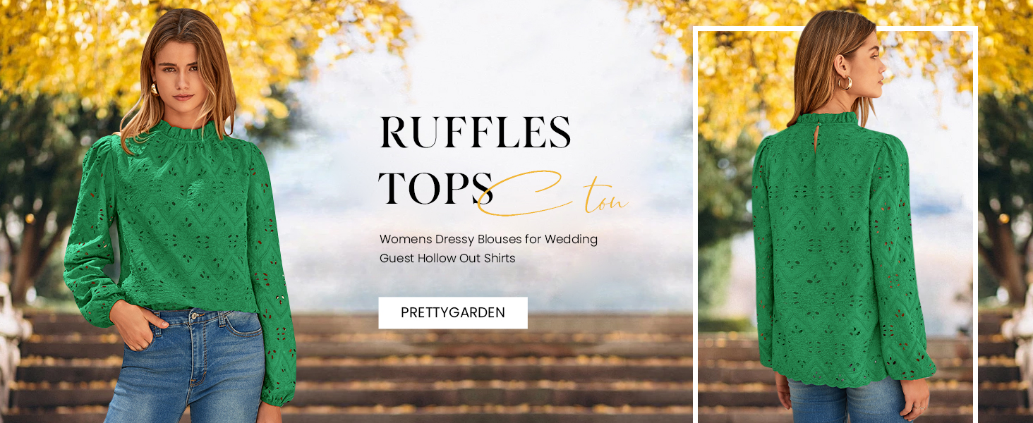 PRETTYGARDEN Women's Holiday Tops Shirt Trendy Eyelet Lace Boho Clothes