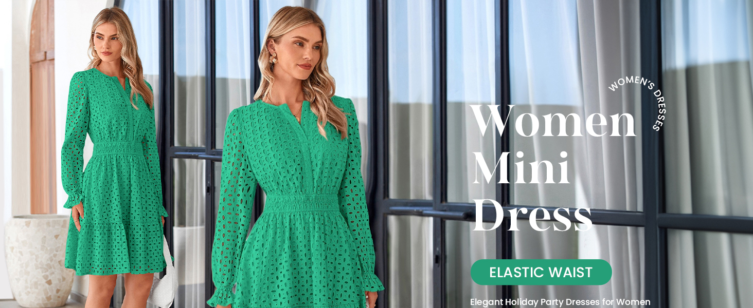 PRETTYGARDEN Long Sleeve Mini Dress for Women Hollow Out V Neck Fall Dresses