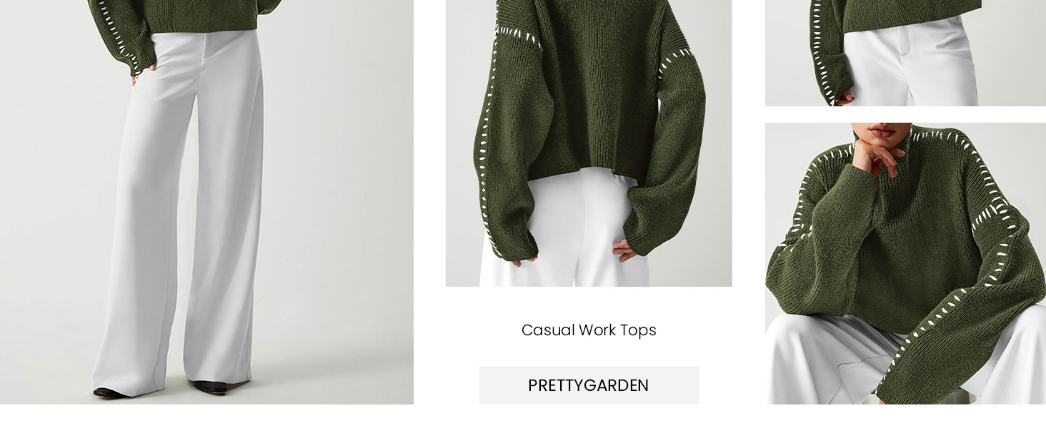 PRETTYGARDEN Casual Work Tops for Women Office Color Block Ribbed Sweaters