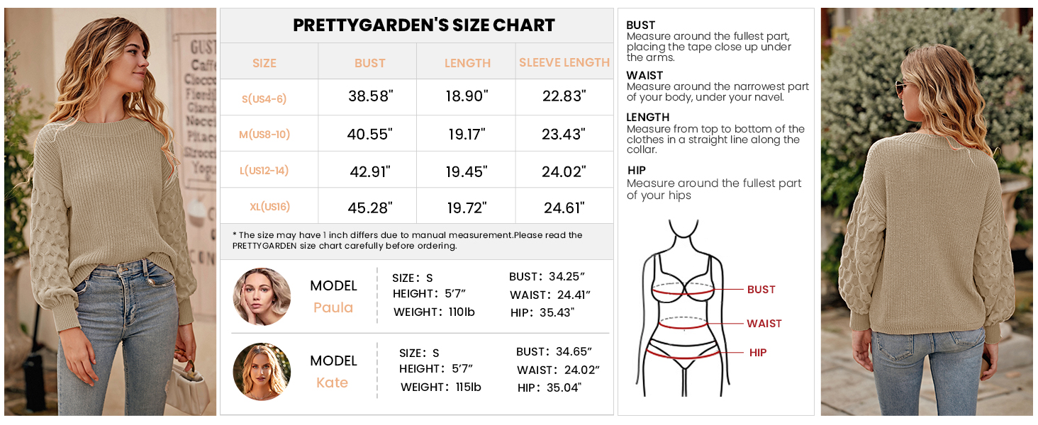 PRETTYGARDEN Women��s Long Sleeve Pullover Sweater Crewneck Chunky Knit Sweaters