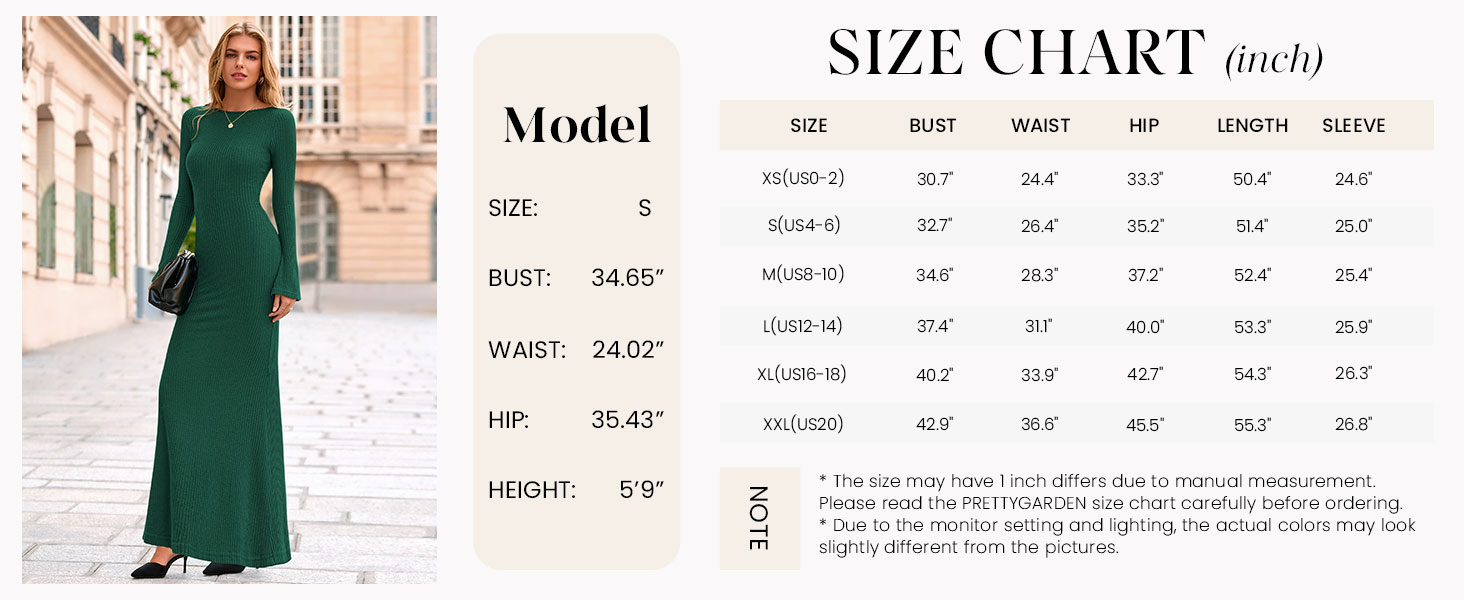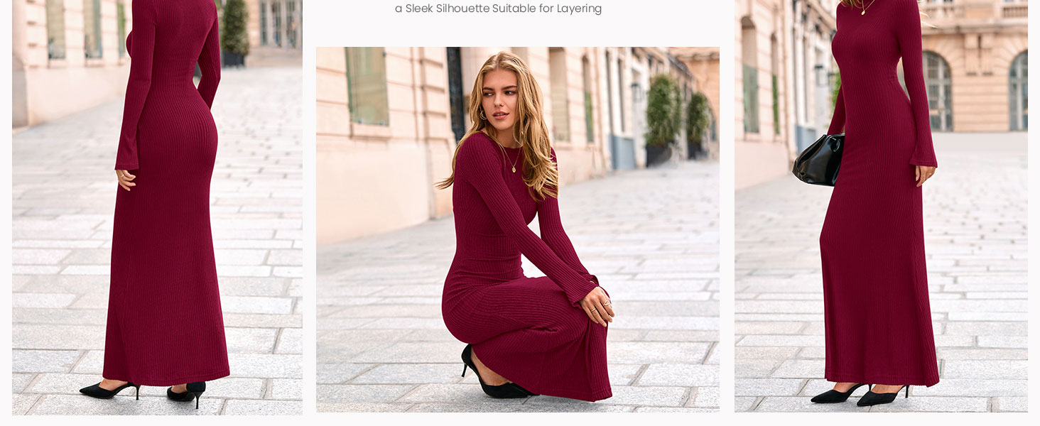 PRETTYGARDEN Casual Bell Sleeve Slimming Fitted Maxi Dresses for Women