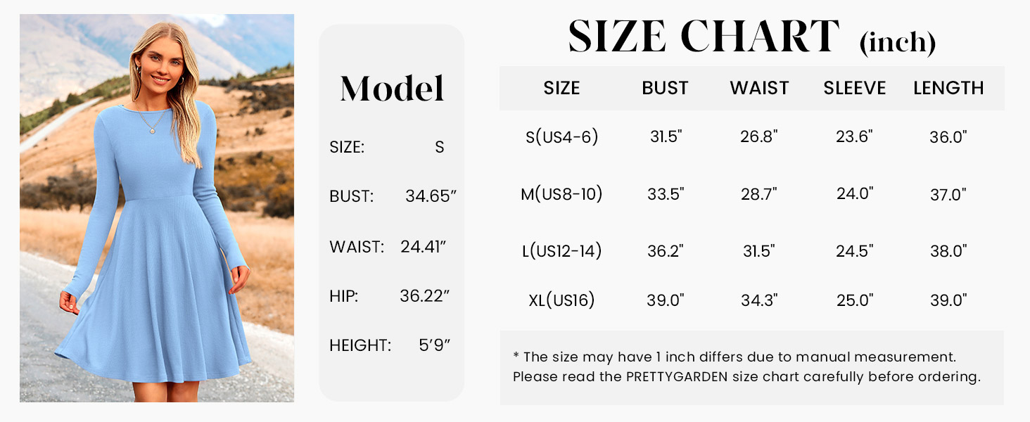 PRETTYGARDEN Fall Dresses for Women Casual Long Sleeve Ribbed Knit Dress