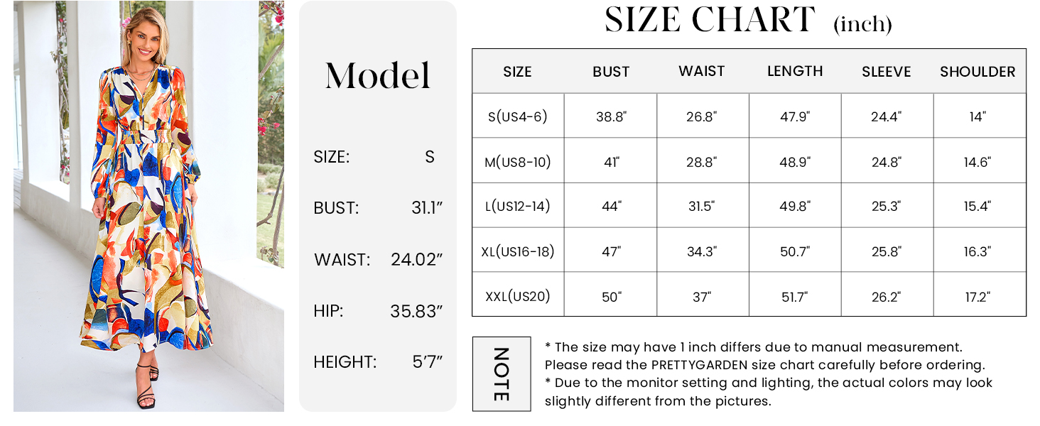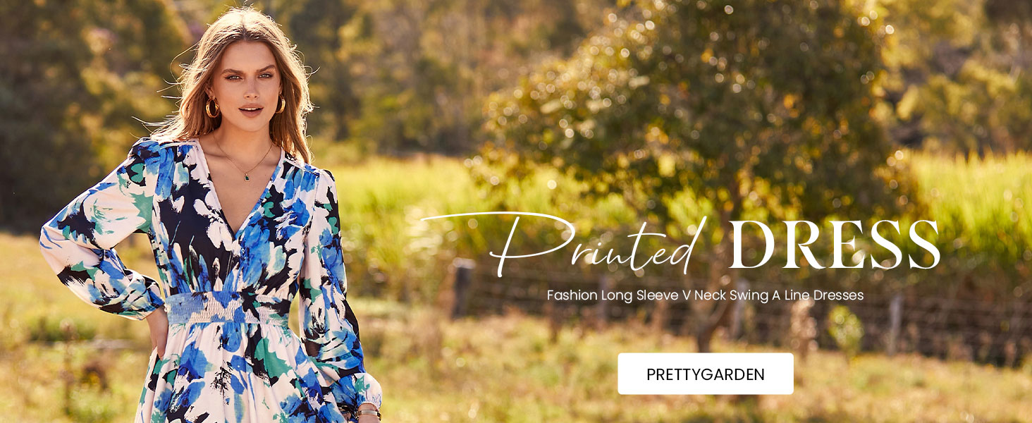 PRETTYGARDEN Women��s Long Flowy Dress Long Sleeve V Neck Swing A Line Dresses