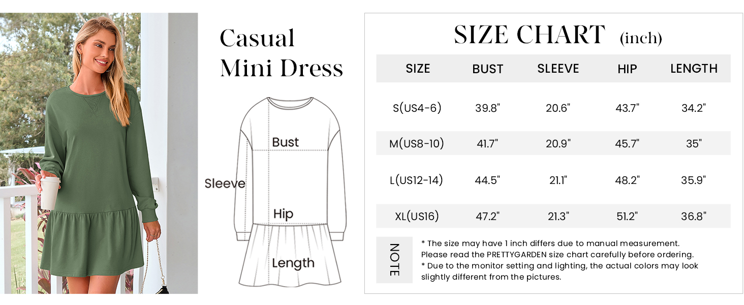 PRETTYGARDEN Sweatshirt Dress for Women Long Sleeve Swing Mini Dresses