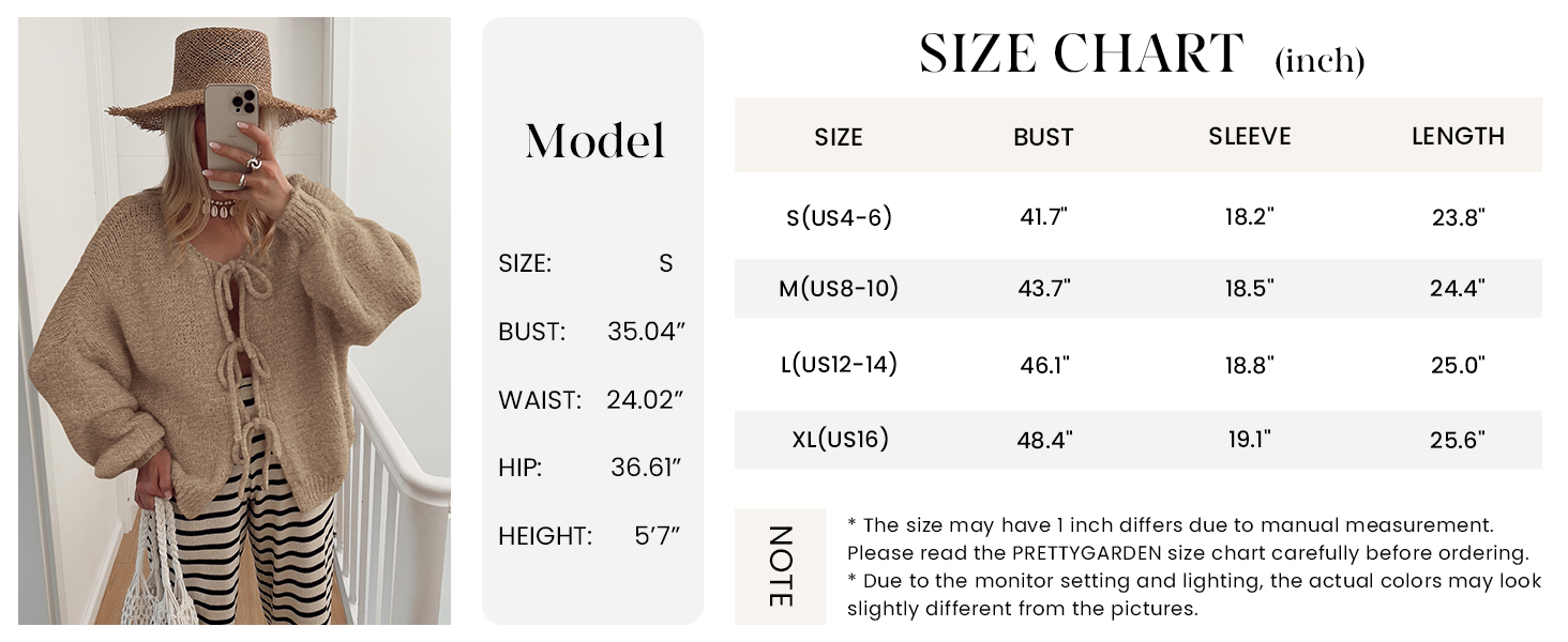 PRETTYGARDEN Ribbed Short Cardigans Tie Bow Going Out Date Night Outfits