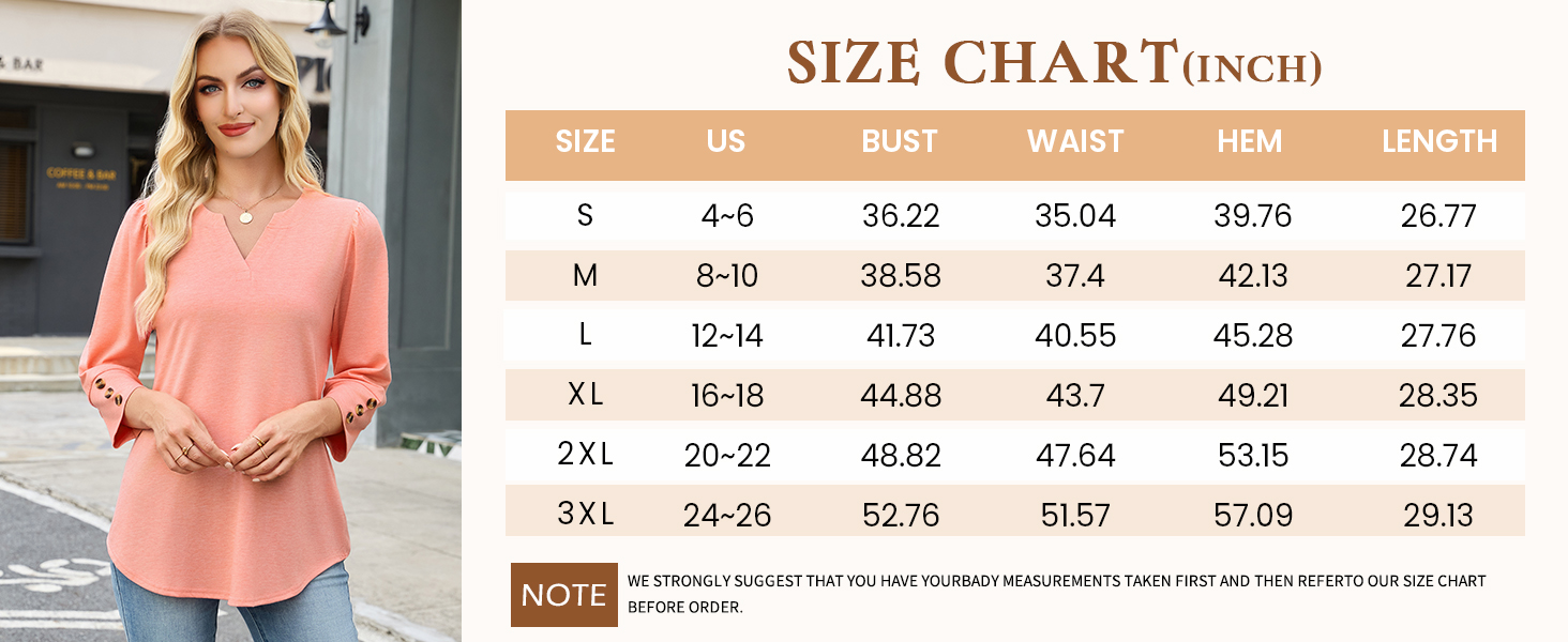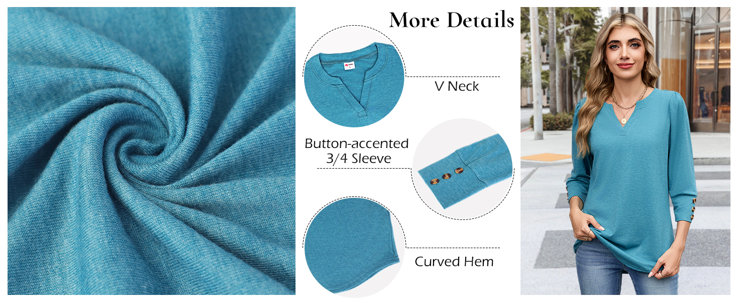 �� V-neck �� button-cuff 3/4 sleeves �� curved hem