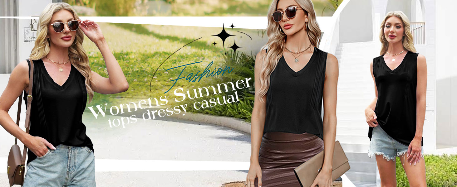 Black Tank Top Woman Pleated Front Dressy Casual Spring Summer Outfits Trendy