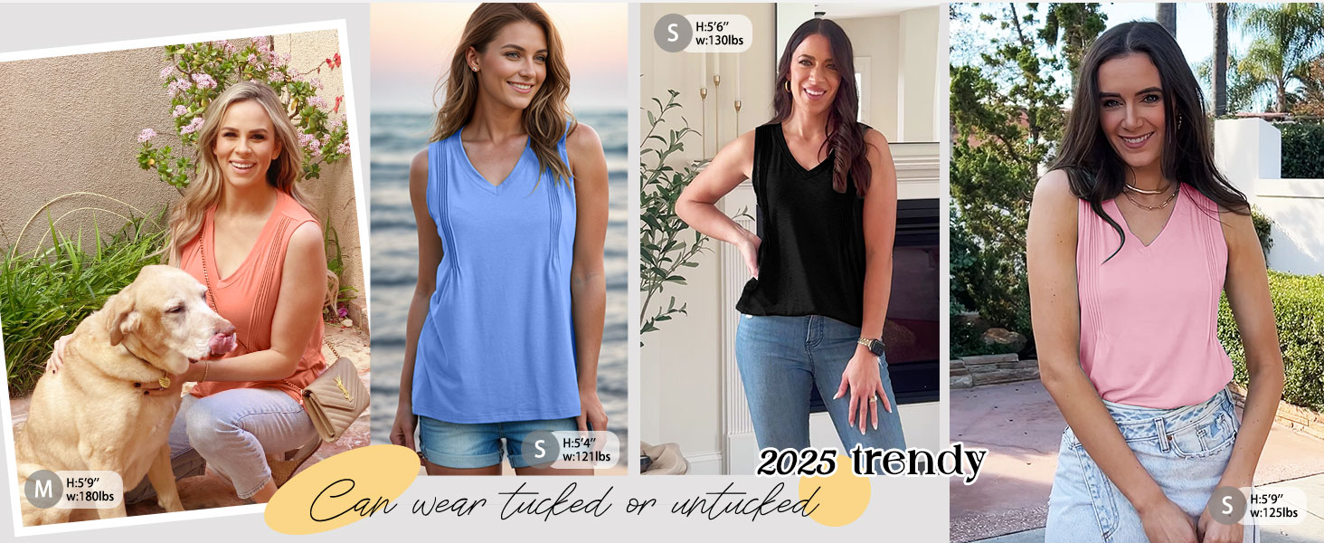 Womens Tank Tops Loose Fit Pleated V Neck Sleeveless Tops Summer Casual
